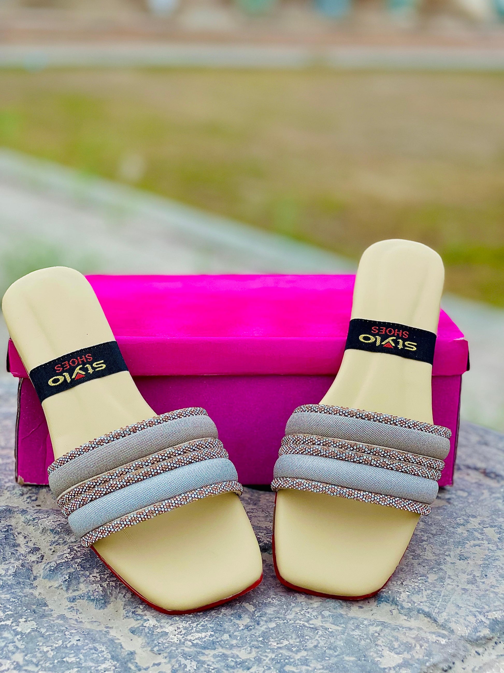 Step into elegance with these beautifully designed beige slippers featuring sparkling cross straps. Perfect for casual outings or festive occasions, these slippers combine comfort, style, and durability. The soft sole ensures all-day comfort, while the non-slip bottom gives you added grip and confidence with every step.
