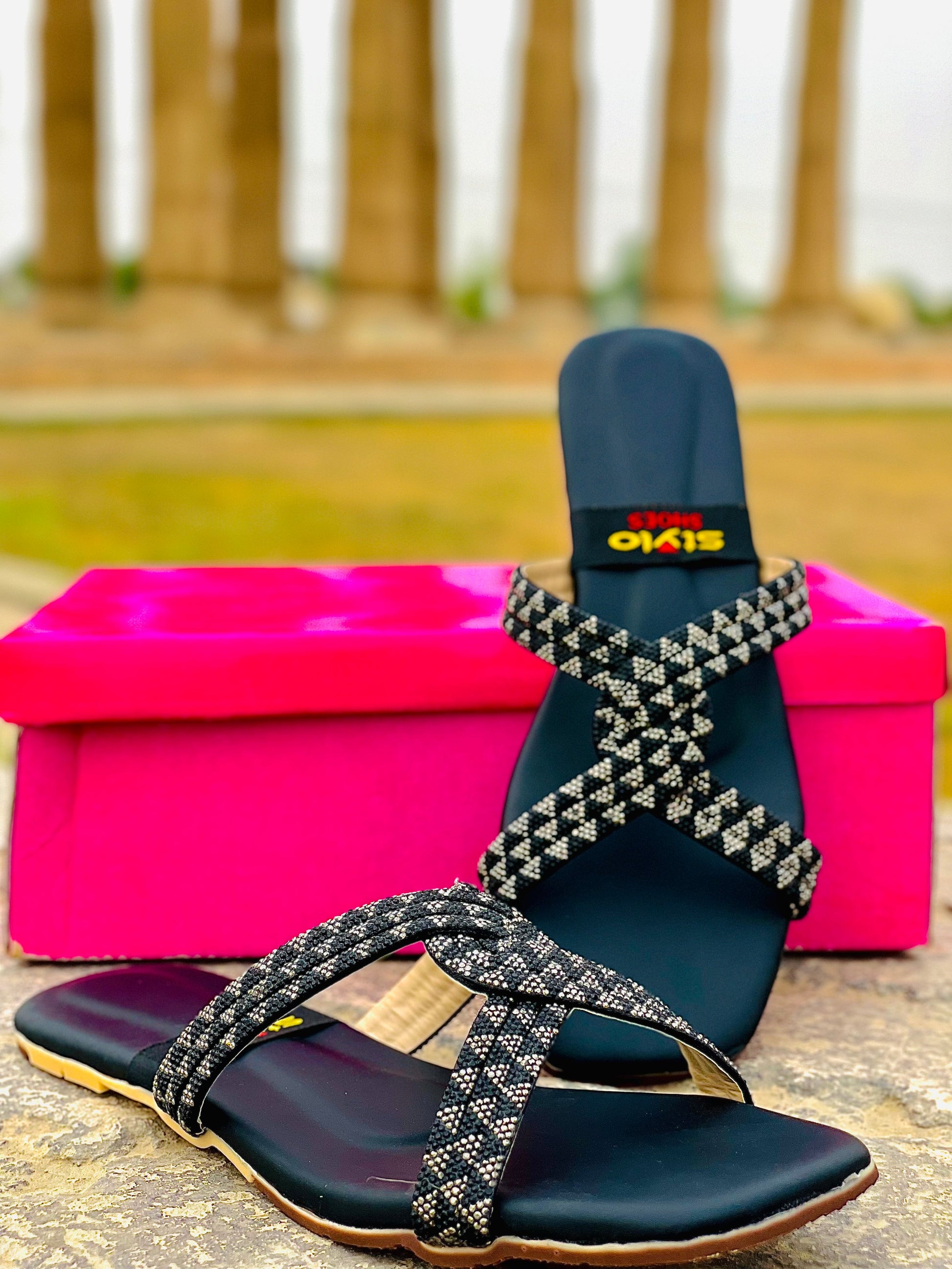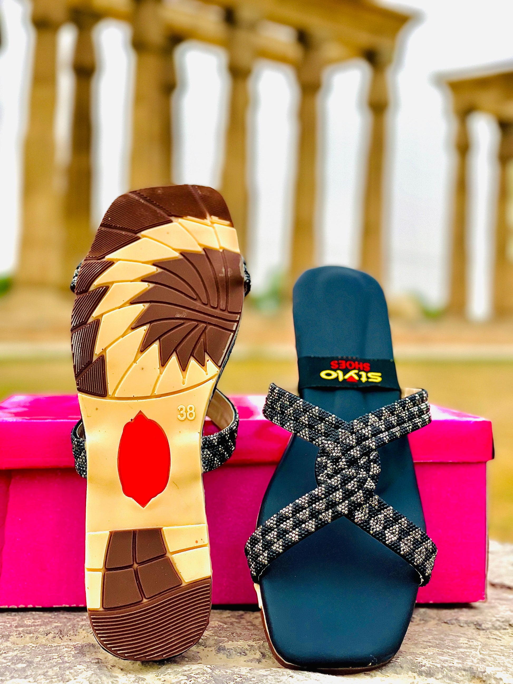 Step into elegance with these beautifully designed beige slippers featuring sparkling cross straps. Perfect for casual outings or festive occasions, these slippers combine comfort, style, and durability. The soft sole ensures all-day comfort, while the non-slip bottom gives you added grip and confidence with every step.