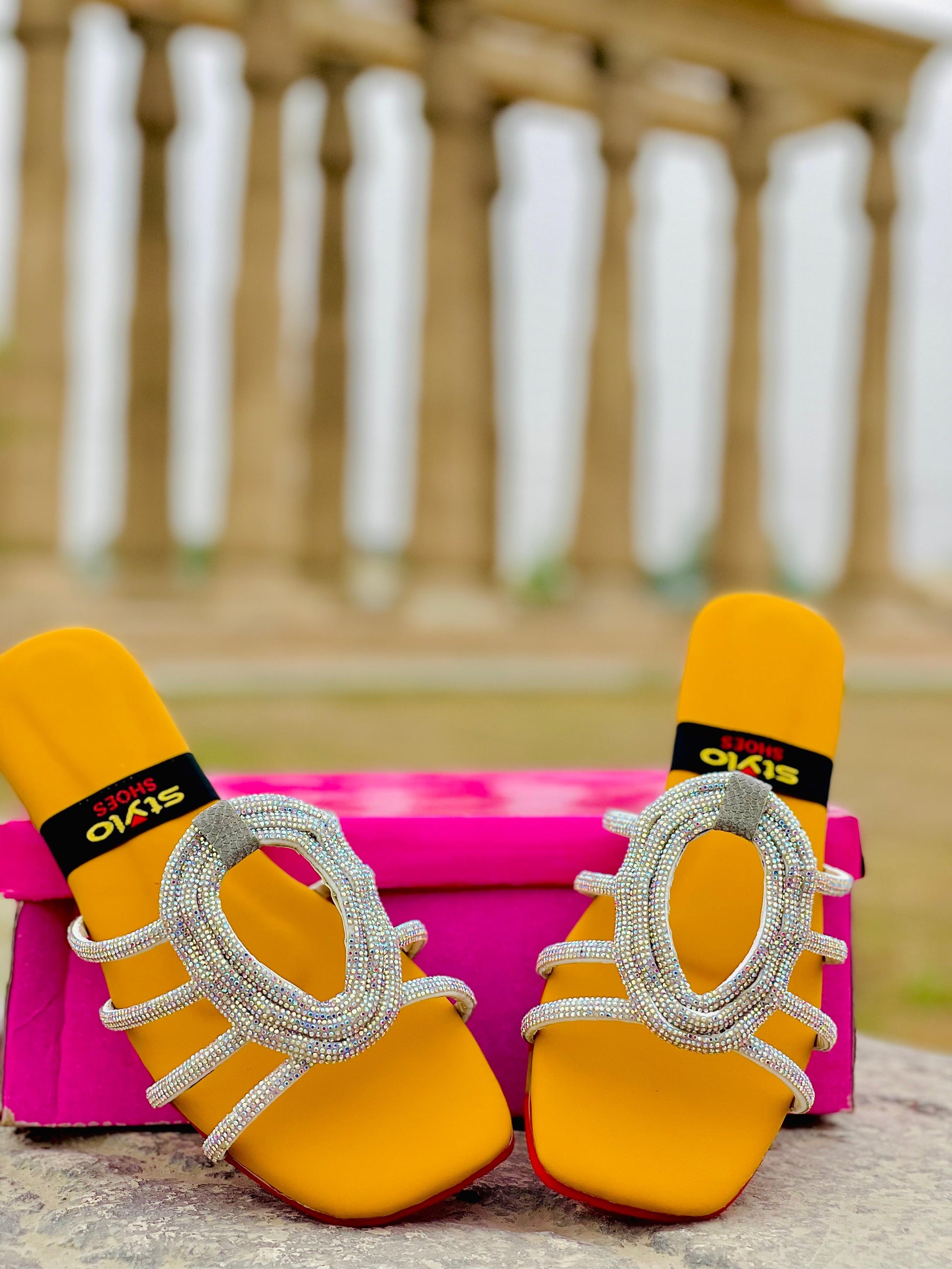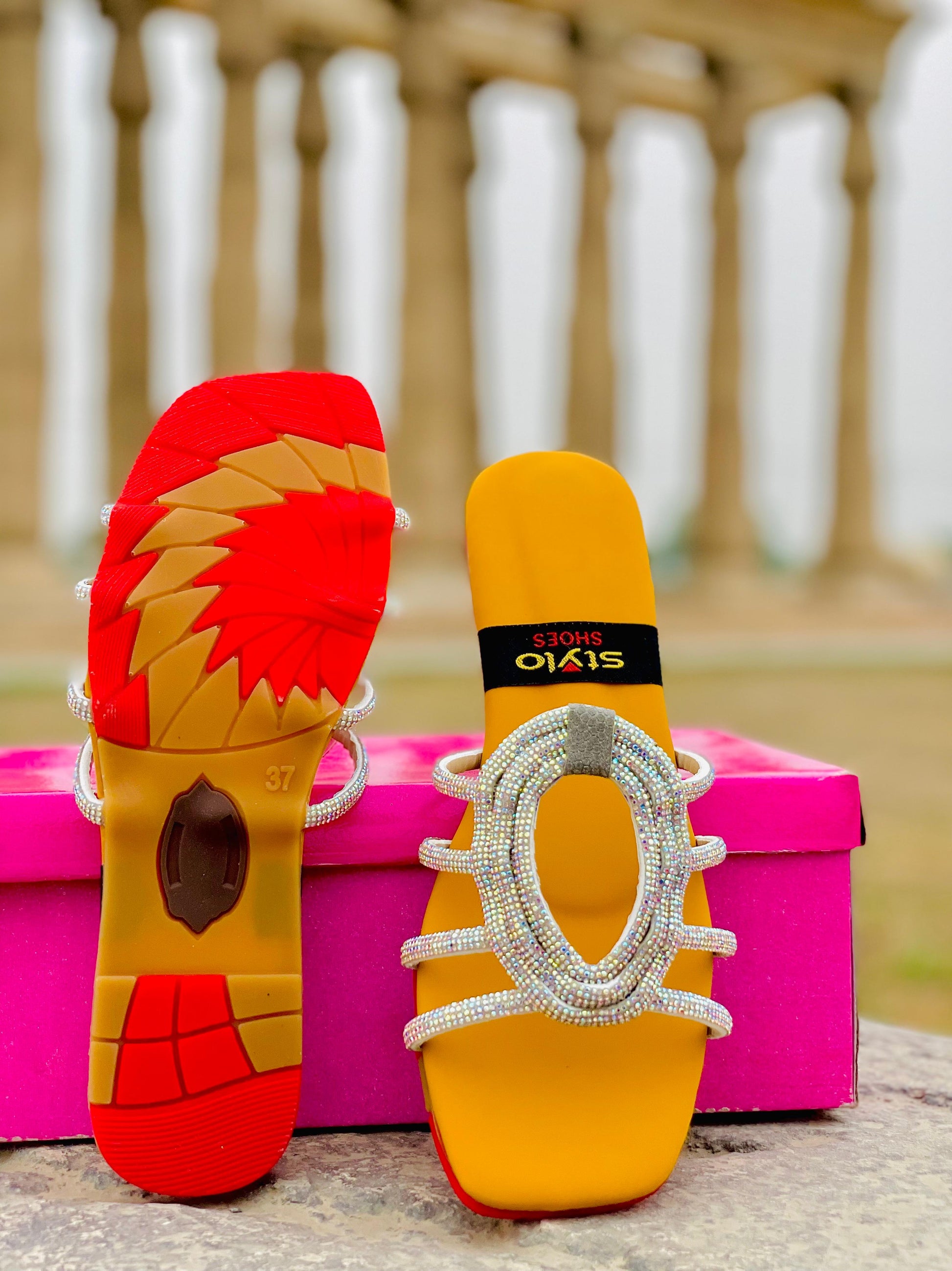 🔸 Design: Open-toe with a statement rhinestone pattern